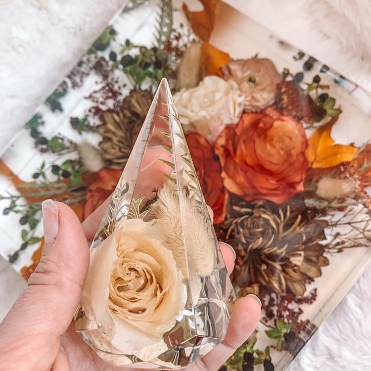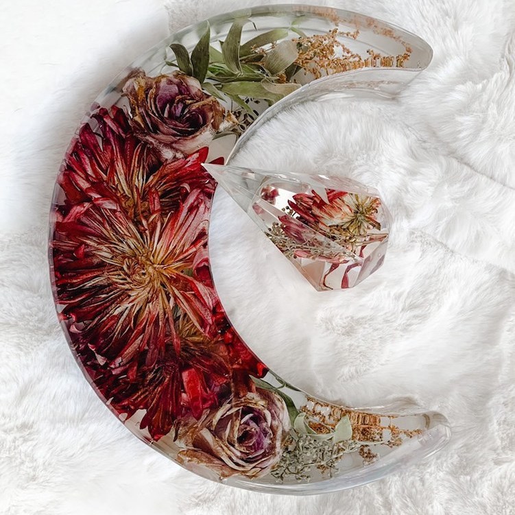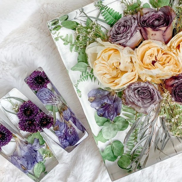 Brandee has been working with resin for 3 years now. She is self taught and had to put her hands in resin Art. She was inspired by Mrs Colorberry on Instagram. She started learning small stuff and was blessed to do 3 local restaurant’s bars in her area. She loves doing everything from ocean to flowers. It has become her peace and she loves to make others smile.