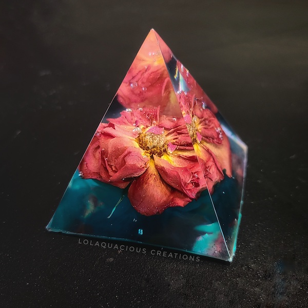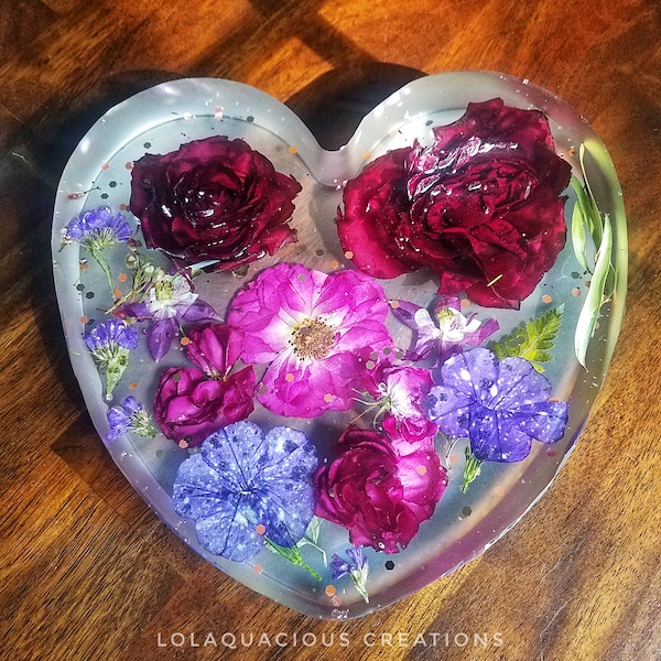 Lola is a resin artist who specializes in preservation of flowers and other memories. If you have something you want to preserve, or if you just would like something pretty and unique to decorate your desired space, send her a message and collaborate with her to make something beautiful!