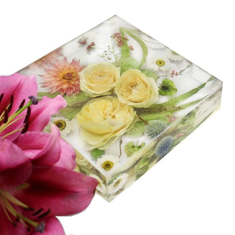 Bloemen vertellen een verhaal, ze creëren een herinnering. Of dat gaat over een trouwerij, een verlies van een dierbare of omdat het de bloemen uit je eigen tuin zijn waar je zo gek op bent. Ik ben ontzettend dankbaar om deze verhalen te mogen vereeuwigen in epoxy en op deze manier de herinnering tastbaar te mogen maken.
