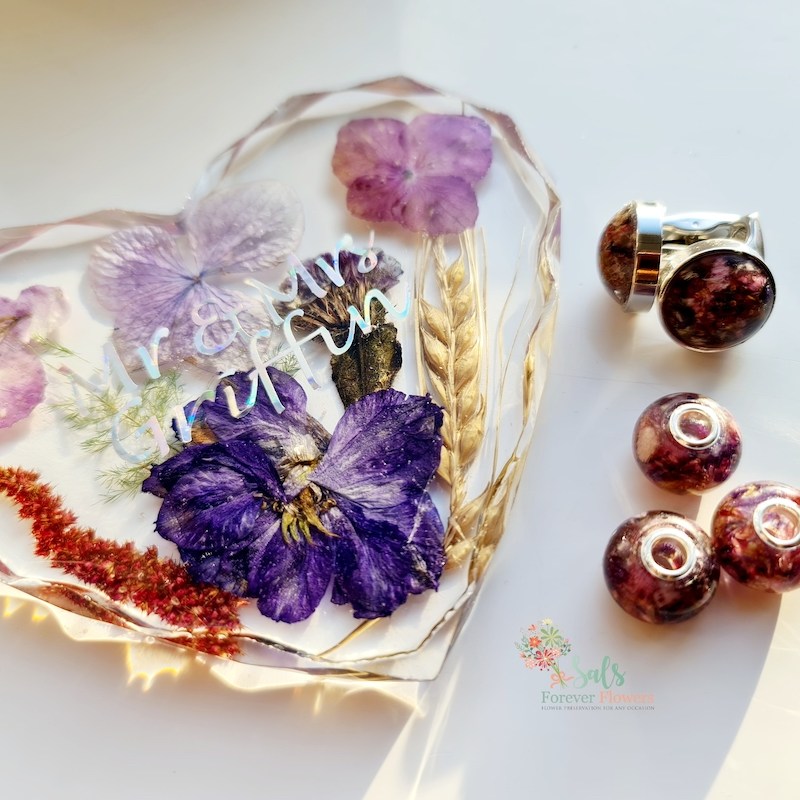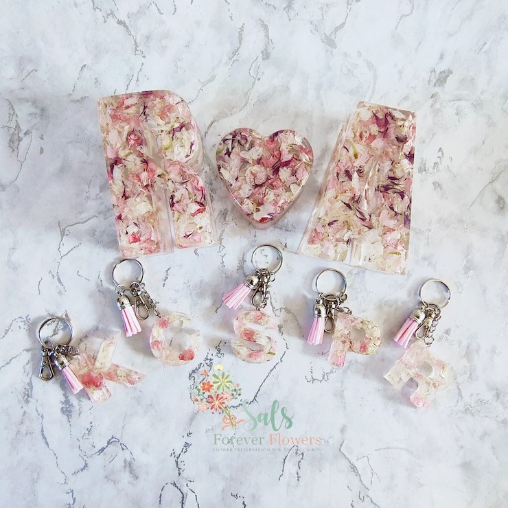 At Sals Forever Flowers, Salma specializes in encapsulating your precious flowers from any occasion. She preserves the flowers in resin and creates timeless keepsakes which will last a lifetime for her customers. Your precious flowers can be made in the form of ornaments, paperweights, jewelries and much more.