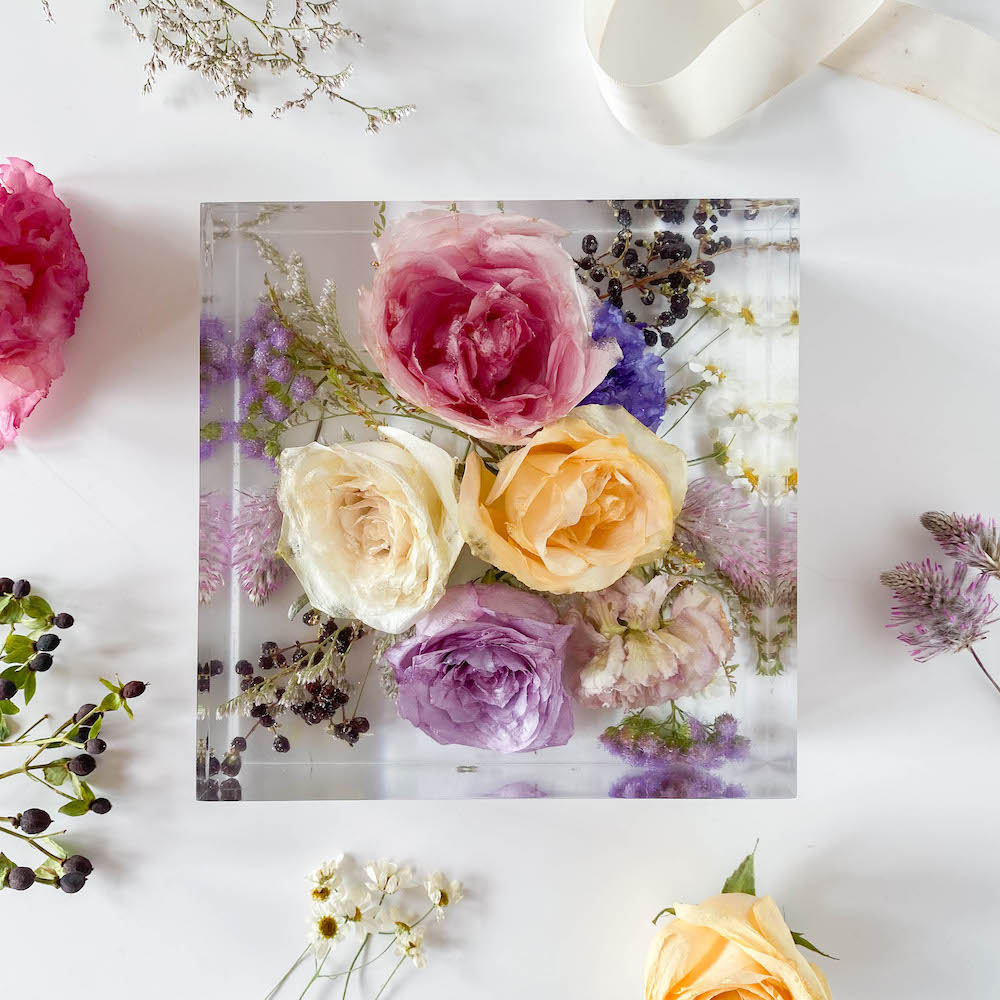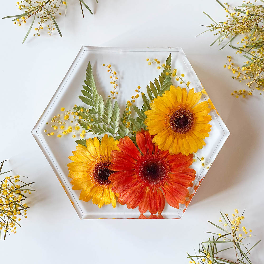 My name is Clarissa, I’m based in Melbourne (Australia) and I love creating beautiful keepsakes from your flowers! I started By Clarissa in 2021, after a year of lockdowns and many hours at home practicing the craft. The first piece I created was for a loved one whose wedding was postponed three times due to lockdown. When I’m not working with resin you’ll find me hanging out with my crazy loud family, exploring my little corner of the world (now that we can again!) or trying to get attention from my cat Kiki.