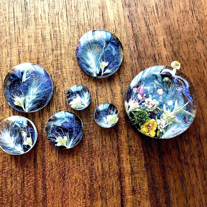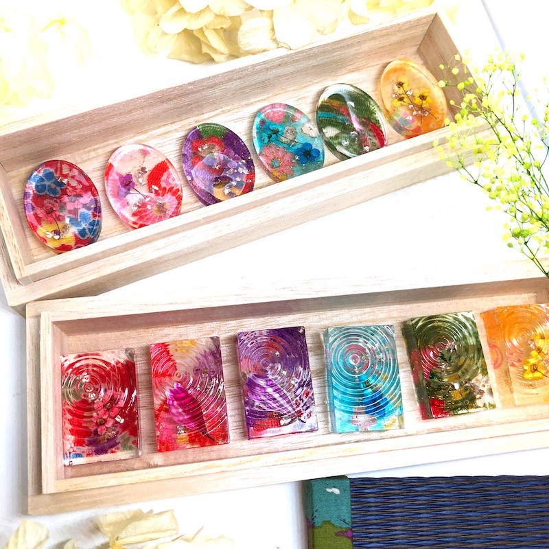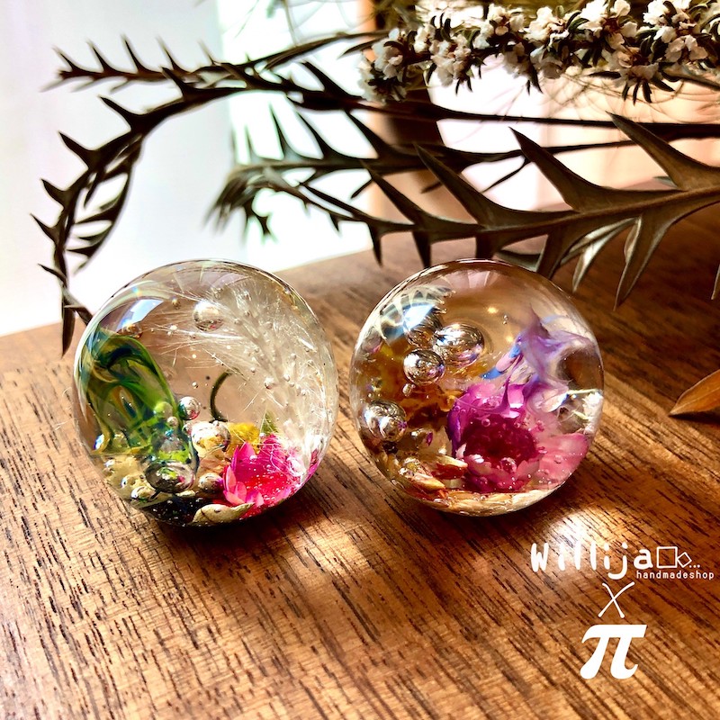 着色剤を使用せず、素材の色のみでカラフルな作品を生み出す事にこだわり、花材も可能な限り庭で育てたものを使用しています。 アクセサリーだけでなく、インテリアや贈り物に喜ばれる箸置きなども制作しおり、結婚式の引き出物や内祝いのお品物の相談も承っております。